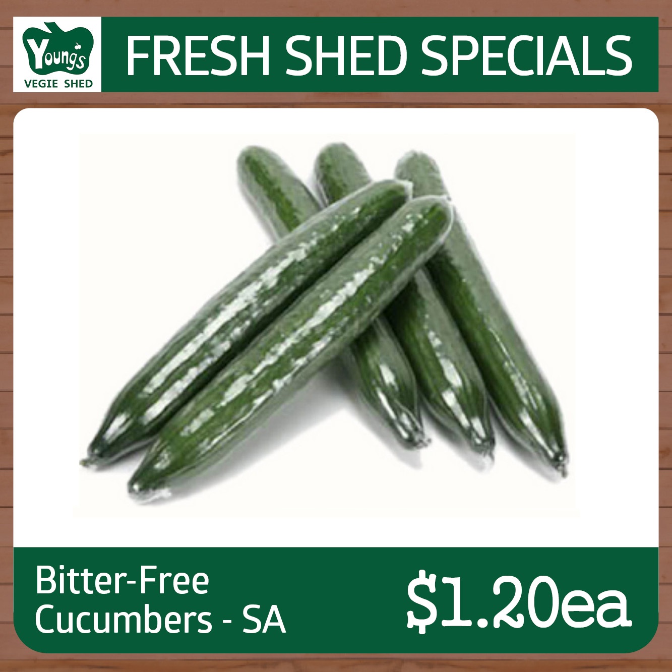 Pick up some Australian Bitter-free Cucumbers from Young's Vegie Shed for just $1.20 each.