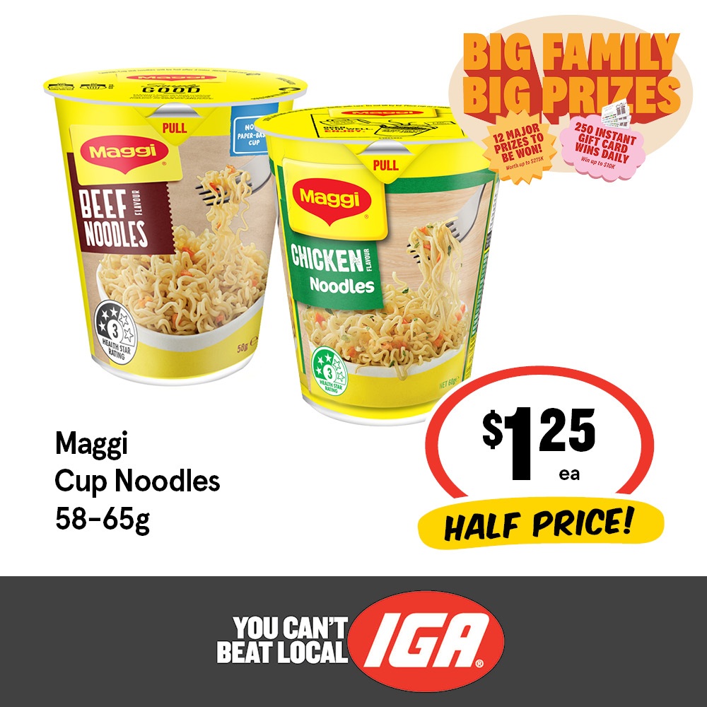 MAGGI Noodle Cups are a must-have in any pantry. Full of flavour, these instant noodles are perfect for a quick and convenient snack on-the-go. Simply open the lid, add the flavour sachet, pour boiling water to the line, and wait 3 minutes.