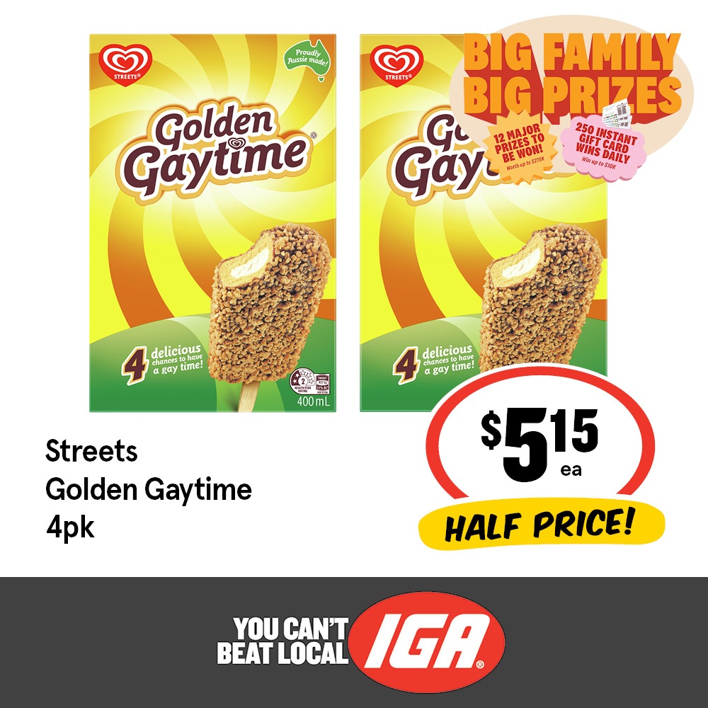 T&C’s apply. Product exclusions, entry requirements and limits apply. For more information visit bigfamilybigprizes.com.au