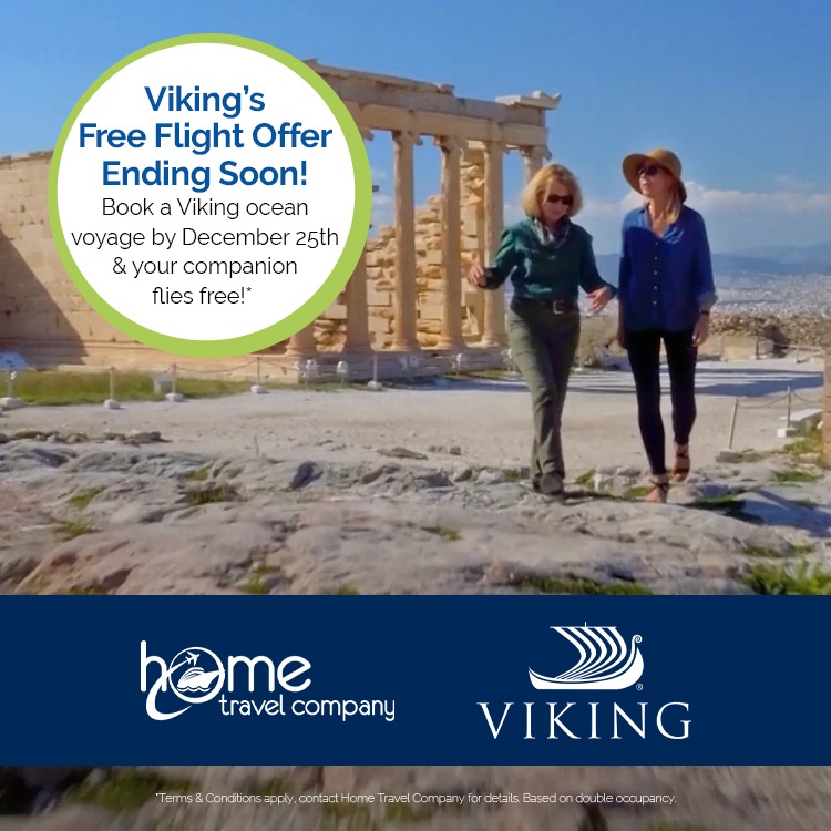 Explore the world the Viking way, in comfort and with more included! Viking's free flight offers are ending soon, hurry and book an ocean voyage by December 25th and your companion flies free.*